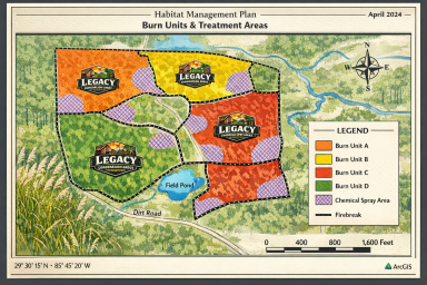 Legacy Conservation Group helps landowners turn good intentions into measurable conservation impact. We design custom land stewardship and habitat management plans that align with NRCS standards and local ecology. From pine stand restoration and invasive species control to wildlife habitat enhancement and long-term maintenance strategies, our work blends field-based expertise with practical, actionable planning.